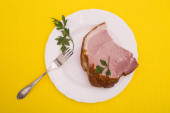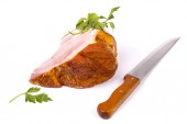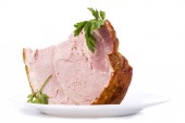Duży kawałek szynki wieprzowej świeże tabliczce na białym tle