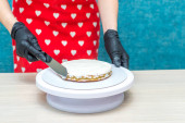 Mikser Baty tort. Szczelnie-do góry. Tort gotowania koncepcja. Miejsce