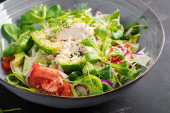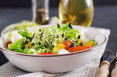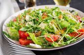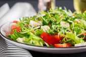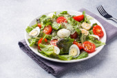 Sałatka z pomidorów z mix mikro zieleni i serem camembert.