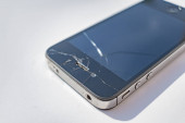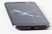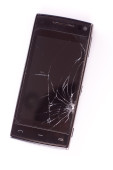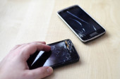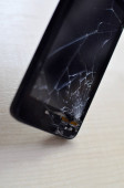Złamane ekranu telefonu komórkowego na szarym tle. Ubezpieczeń smartfon i telefon komórkowy gwarancja concept.top Zobacz.