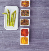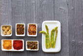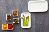Zdjęcie "Świeże szparagi serwowane na białym talerzu z rustykalnym drewnianym tle tabeli, widok z góry." może być wykorzystywane do celów osobistych i komercyjnych zgodnie z warunkami zakupionej licencji Royalty-free. Obraz jest dostępny do pobrania w jakości wysokiej rozdzielczości do 5760x3840.