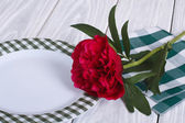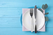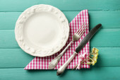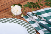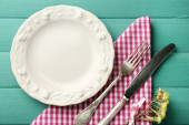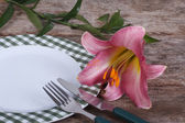 wiosna tabeli. talerz i sztućce, udekorowany kwiatami Apple