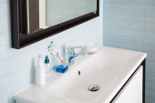 Zdjęcie "część nowoczesną łazienkę w niebieski i szary" może być wykorzystywane do celów osobistych i komercyjnych zgodnie z warunkami zakupionej licencji Royalty-free. Obraz jest dostępny do pobrania w jakości wysokiej rozdzielczości do 5760x3840.
