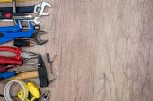 Zdjęcie "Zestaw narzędzi roboczych na drewnianym tle" może być wykorzystywane do celów osobistych i komercyjnych zgodnie z warunkami zakupionej licencji Royalty-free. Obraz jest dostępny do pobrania w jakości wysokiej rozdzielczości do 5760x3840.