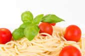 Makaron z pomidorami koktajlowymi i świeżą bazylią