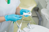Prawidłowego sposobu szczotkowania. Dentysta pokazuje, jak szczotki do zębów.