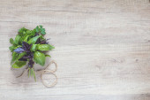 Pusta płyta niebieski i sztućce z Żonkilami na serwetce