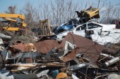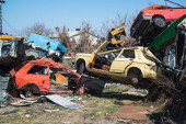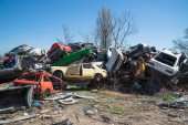 Bitola, Macedonia - 22 marca 2017: stare samochody na stertę złomu