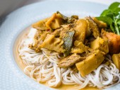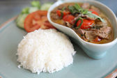 Massaman curry z kurczaka i ryżu, danie tajskie, tajskie jedzenie, kurczak Massaman curry z ryżu parzona.
