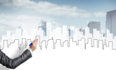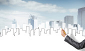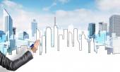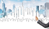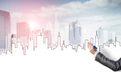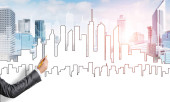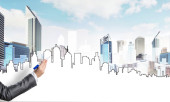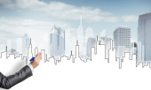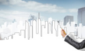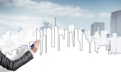 Ręka projektantki rysunku z projektu budowy ołówka