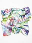 Wielobarwny jedwab apaszka na białym tle. Widok z góry.