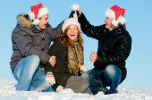 Portret szczęśliwy uśmiechający się dziewczyny w lesie zima śnieg