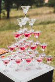Szampana slajdów, Okulary z wiśniami, kolacja w restauracji lato