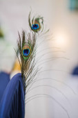 Weselne ozdobione kwiatami i Pawich piór, kolacja w restauracji, bankiet