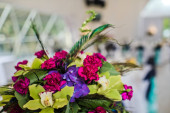 Zdjęcie "Weselne ozdobione kwiatami i Pawich piór, kolacja w restauracji, bankiet" może być wykorzystywane do celów osobistych i komercyjnych zgodnie z warunkami zakupionej licencji Royalty-free. Obraz jest dostępny do pobrania w jakości wysokiej rozdzielczości do 5760x3840.