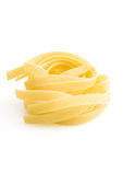 Niegotowane gniazdo tagliatelle włoski makaron na białym tle na biały bac