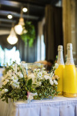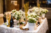 Weselne w restauracji ozdobione świeżymi kwiatami