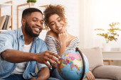 Szczęśliwa para Wyszukiwanie miejsc do odwiedzenia, za pomocą laptopa
