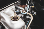Zdjęcie "Zbliżenie płyn niezamarzający zbiornik wyrównawczy pod maską samochodu. Niski poziom płyn niezamarzający w samochodzie." może być wykorzystywane do celów osobistych i komercyjnych zgodnie z warunkami zakupionej licencji Royalty-free. Obraz jest dostępny do pobrania w jakości wysokiej rozdzielczości do 5760x3840.
