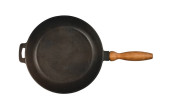 Zbliżenie nowoczesny pusty szafirowy patelnia na białym tle.