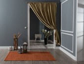 Szary tło sofa ze złotą kurtyną i pomarańczowy dywan w stylu dekoracyjnym wazon roślin, zegar na ścianie.