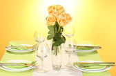 Zdjęcie "tabela ustawienia na żółtym tle" może być wykorzystywane do celów osobistych i komercyjnych zgodnie z warunkami zakupionej licencji Royalty-free. Obraz jest dostępny do pobrania w jakości wysokiej rozdzielczości do 5760x3840.