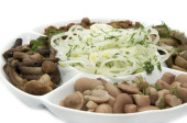 świeże sałatki, ryby i warzyw. powolne jedzenie, cou