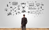 Menedżer szuka na ścianie z koncepcji przeciążonego mózgu