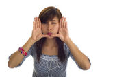 Kobieta z palcem na ustach