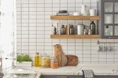 Kolekcja różnych ceramiki uzupełniają wzorzyste płytki. Więcej inspiracji. nowoczesne przybory kuchenne nowa koncepcja