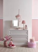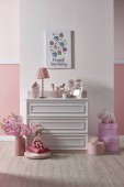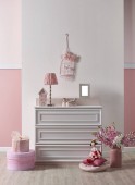 Różowy baby i kid stylu pokój z krzesłem rowerowym i dekoracji szafy.
