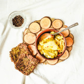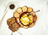 Zdrowych domowych Hummus z kurkumą i rozmaryn w stylu rustykalnym w