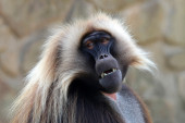 Mężczyzna Bleeding Heart małpa portret w naturalnym środowisku