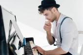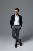 wesoły przystojny mężczyzna odpoczynek w fotelu w słońcu
