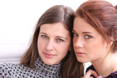 Dwie dziewczyny turystów są fotografowane w Moskwie (Rosja)