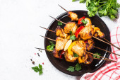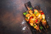 Kebab z kurczaka z warzywami na szaszłyki widok z góry.