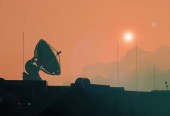 Antena satelitarna antena z bliska. Miejsca na bazę na Marsie