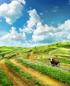 Zdjęcie "Letni krajobraz z zieloną trawą, drogą i chmurami" może być wykorzystywane do celów osobistych i komercyjnych zgodnie z warunkami zakupionej licencji Royalty-free. Obraz jest dostępny do pobrania w jakości wysokiej rozdzielczości do 5760x3840.