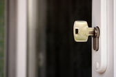 Klucz z dom w kształcie cacko w zamek, zbliżenie. Miejsca na tekst