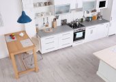 Wnętrze przytulne nowoczesna kuchnia z nowe meble i sprzęt AGD