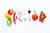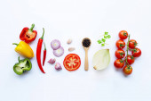Różnych świeże warzywa i zioła na biały. Zdrowe jedzenie conc