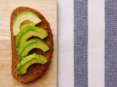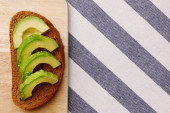 Widok z góry pół awokado na drewniane i tło włókienniczych