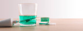 Higiena jamy ustnej koncepcja szczoteczkę do zębów pastą nad mouthw