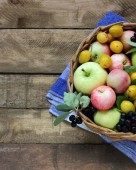Rustykalny ogród jabłka, śliwki, Jarzębina czarnopłodowa na stół szorstki,