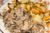 smażone ziemniaki z kurczaka skrzydła grill / Fotografia jedzenie na obiad, kolację lub drugie danie Breakfast.the palona potatoes.to dekoracji umieścić meat.fried Skrzydełka kurczaka gotowane w oven.delicious, pyszne jedzenie.