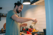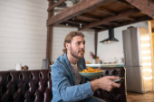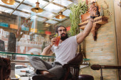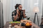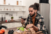 Miły młody człowiek, ciesząc się jego czerwone wino