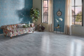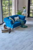 turkusowa sofa w klasycznym salonie z drewnianą podłogą, styl wnętrza