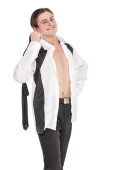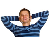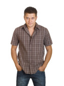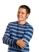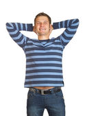 młody inteligentny facet, ciesząc się jego komunikacji na telefon komórkowy