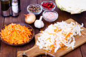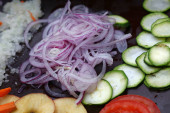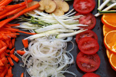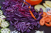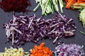 Wytnij różne pokrojone warzywa na pokładzie do gotowania