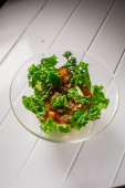 Zdjęcie "Sałatka z mięsa, kurczak, sałata, koperek, pomidor. Dla menu restaurant bar café" może być wykorzystywane do celów osobistych i komercyjnych zgodnie z warunkami zakupionej licencji Royalty-free. Obraz jest dostępny do pobrania w jakości wysokiej rozdzielczości do 5760x3840.